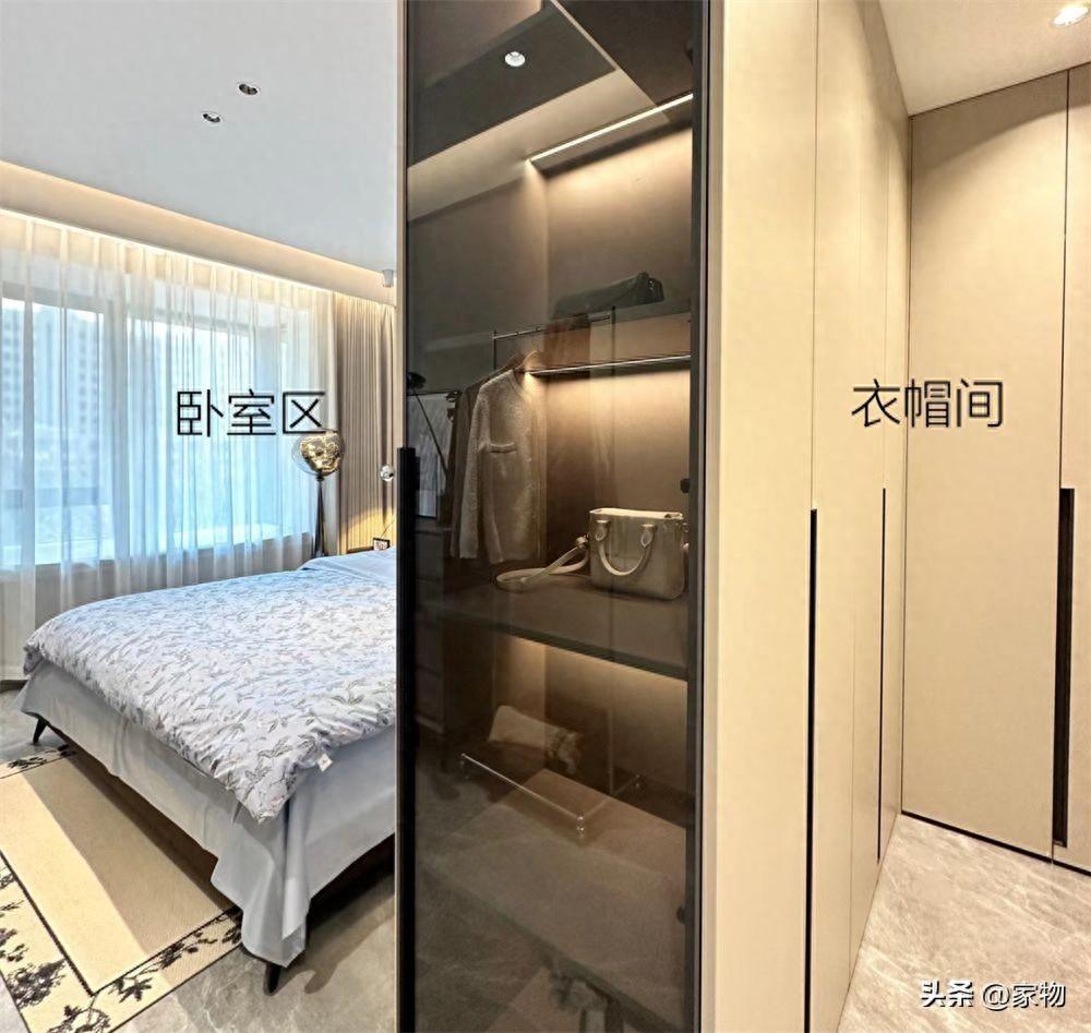若有配套的衛生間,衛生間門開在了步入式衣帽間內,進入其中也不影響,同時也算是更增添了幾分私密性和隱私感吧。