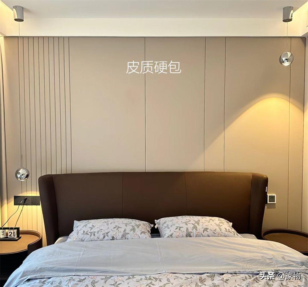 牀頭可以做類似的硬包背景牆,也可以單純刷個乳膠漆,但我個人建議還是要增加輔助燈光進行照明,一方面,弱化L形衣櫃背板的單調,另一方面,也可以給空間增加層次感。