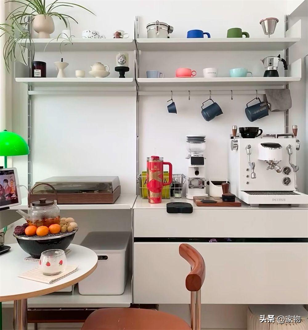 中間櫃子檯面,用來放咖啡機和飲水機,當成家裏的水吧。