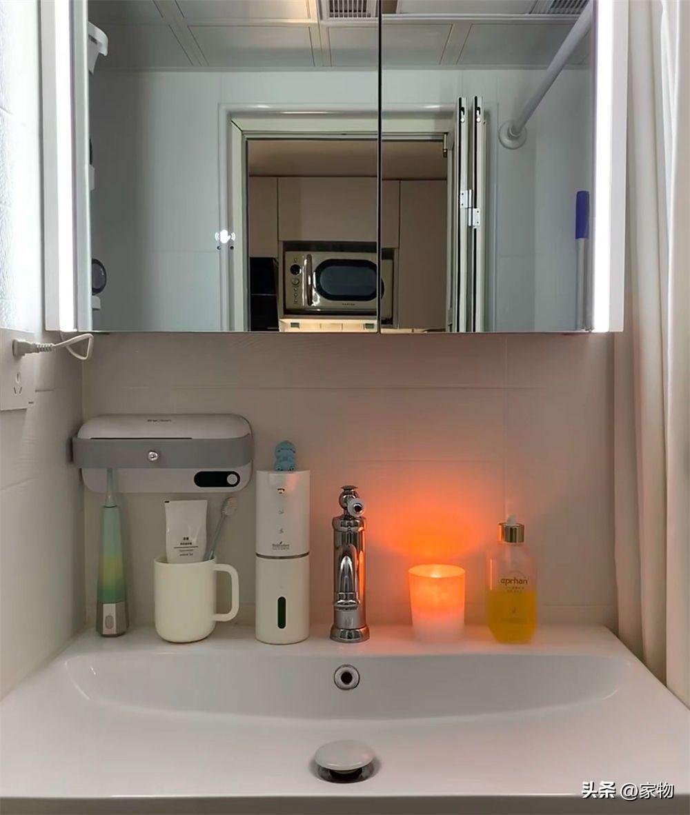 衛生間在廚房對面,也收拾得乾乾淨淨,從側面也能看出,雖然是一個人生活,但日常生活習慣卻保持良好,絲毫沒有因爲懈怠而導致屋內雜亂,這點我還是挺佩服的。