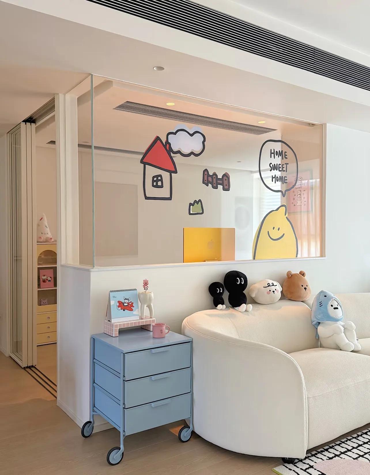 裝好之後房間與客廳就可以共用採光,視線更通透,好像顯得房子也大了不少,再搭配各式各樣的靜電貼,隨時可換風格成本又低。