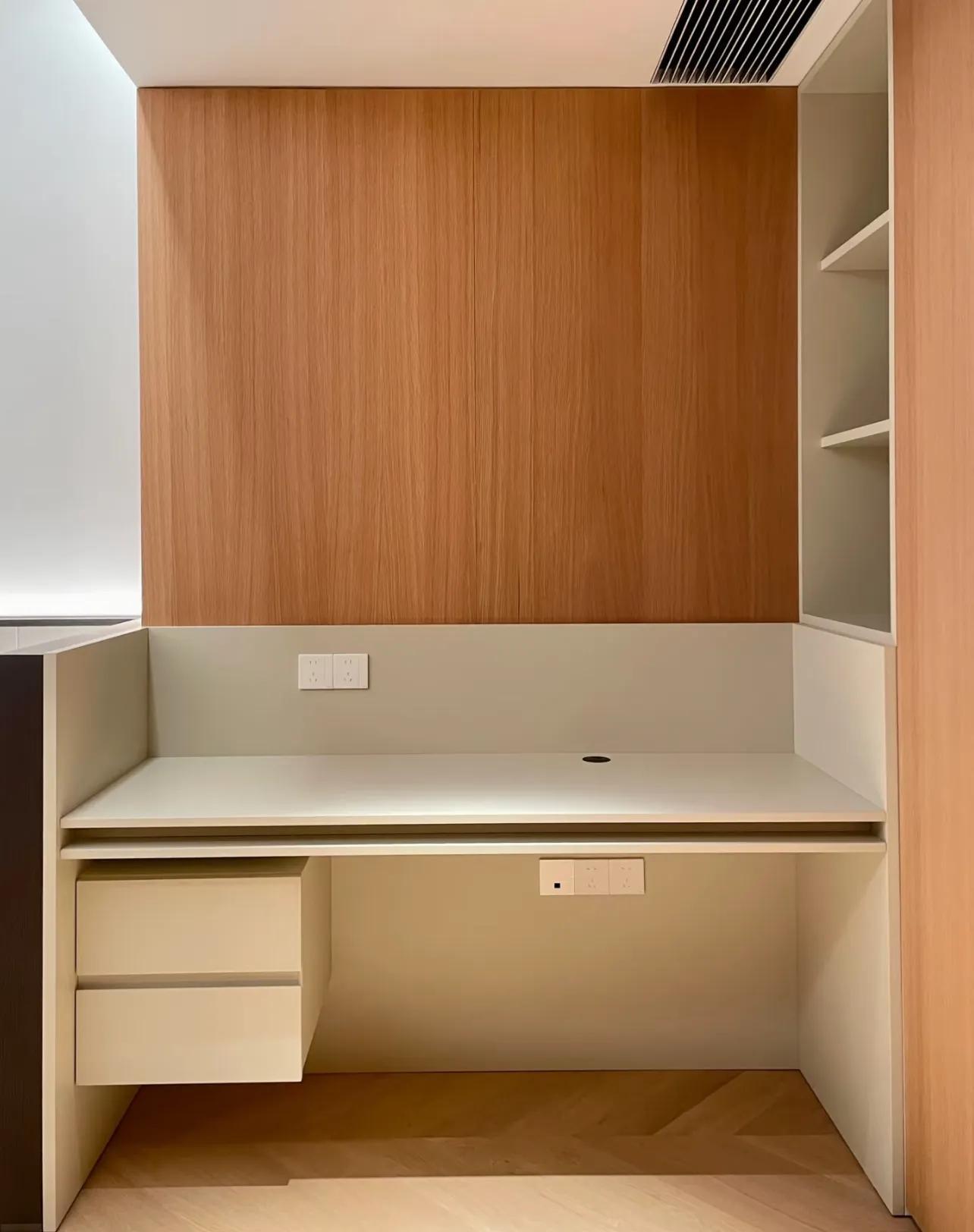屋主@Feb 11th,衣櫃要是有轉角空間,那可千萬別浪費了,轉過來聯通成書桌,實用性可太強了。
