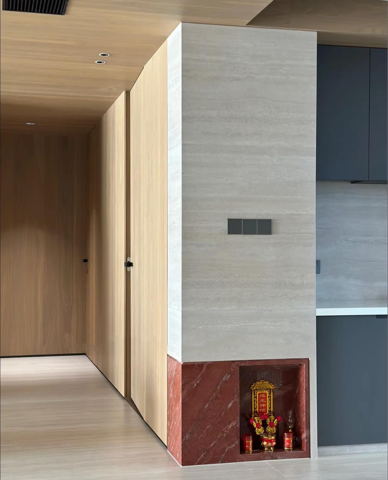 屋主@新一,扭不過爸媽就加入,爲了與家人同住,給現代簡約風格的家裏,居然留了神明位,看似離了大譜的操作,沒成想結果也不賴。