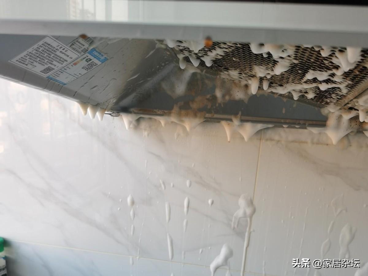整個過程,其實只需要兩三分鐘就可以完成了。整個將家裏的油煙機有油污的部分,全部噴上了泡沫。