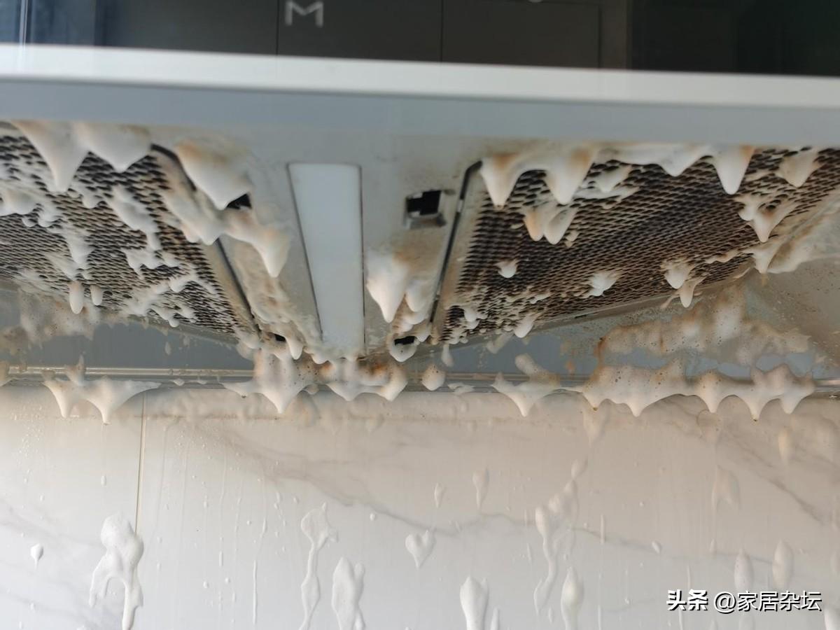 等待的時間不是很長。我家等待了大概5分鐘,就發現油煙機滴滴嗒嗒往下滴水了。這時就說明,廚房的油污淨已經徹底作用完了。