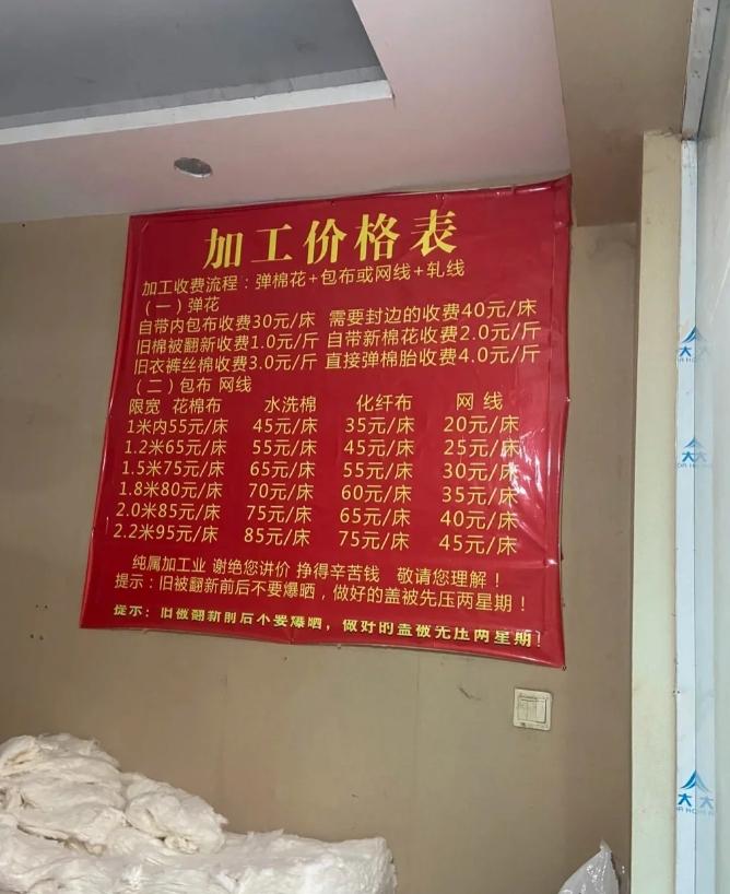 棉花被和市場上的其他被子不一樣,這種被子“人工”的成分更多。所以它有一部分人工費。