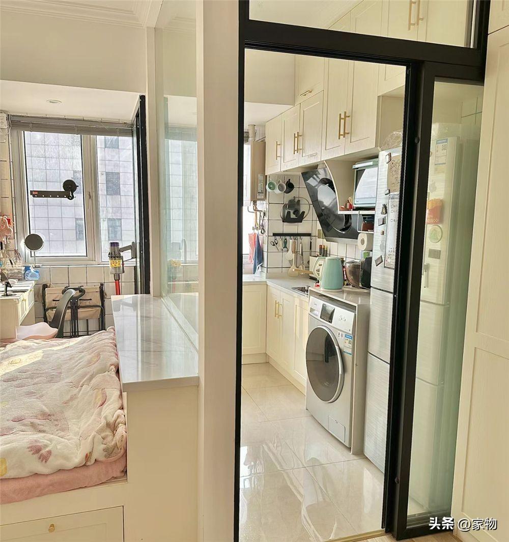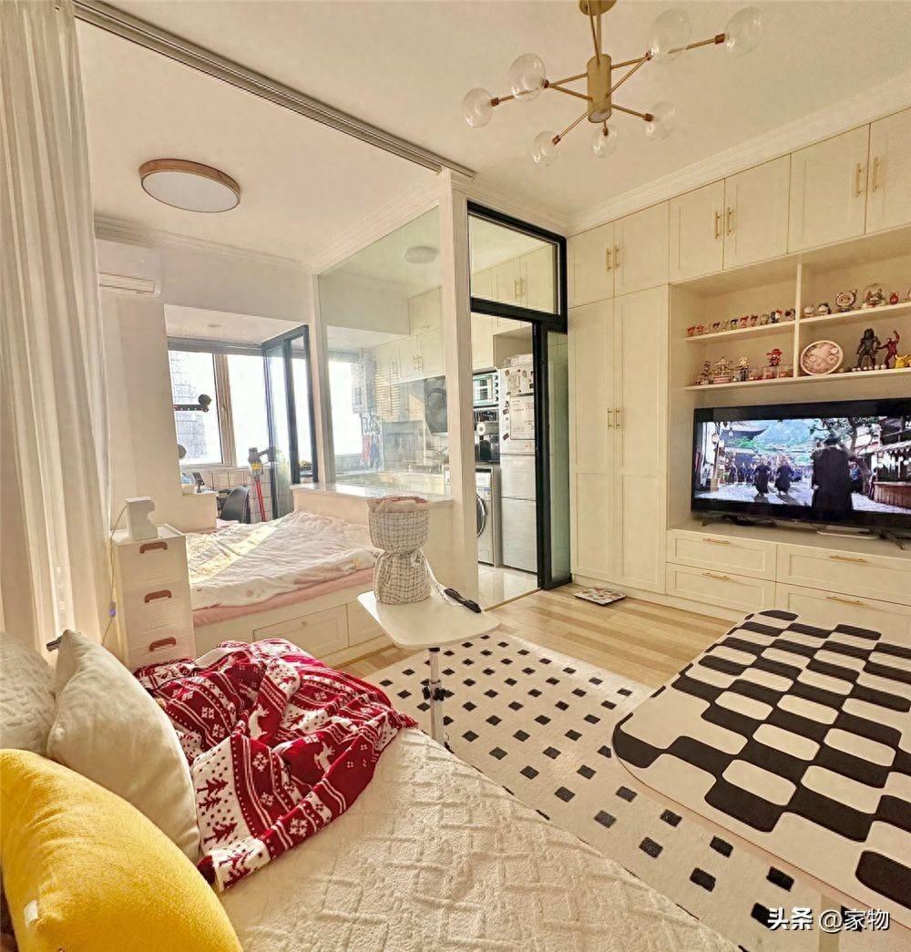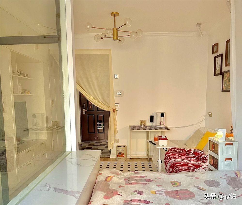 湖北姑娘買下30㎡蝸居,牀尾加玻璃牆切出間廚房,網友:真的服了