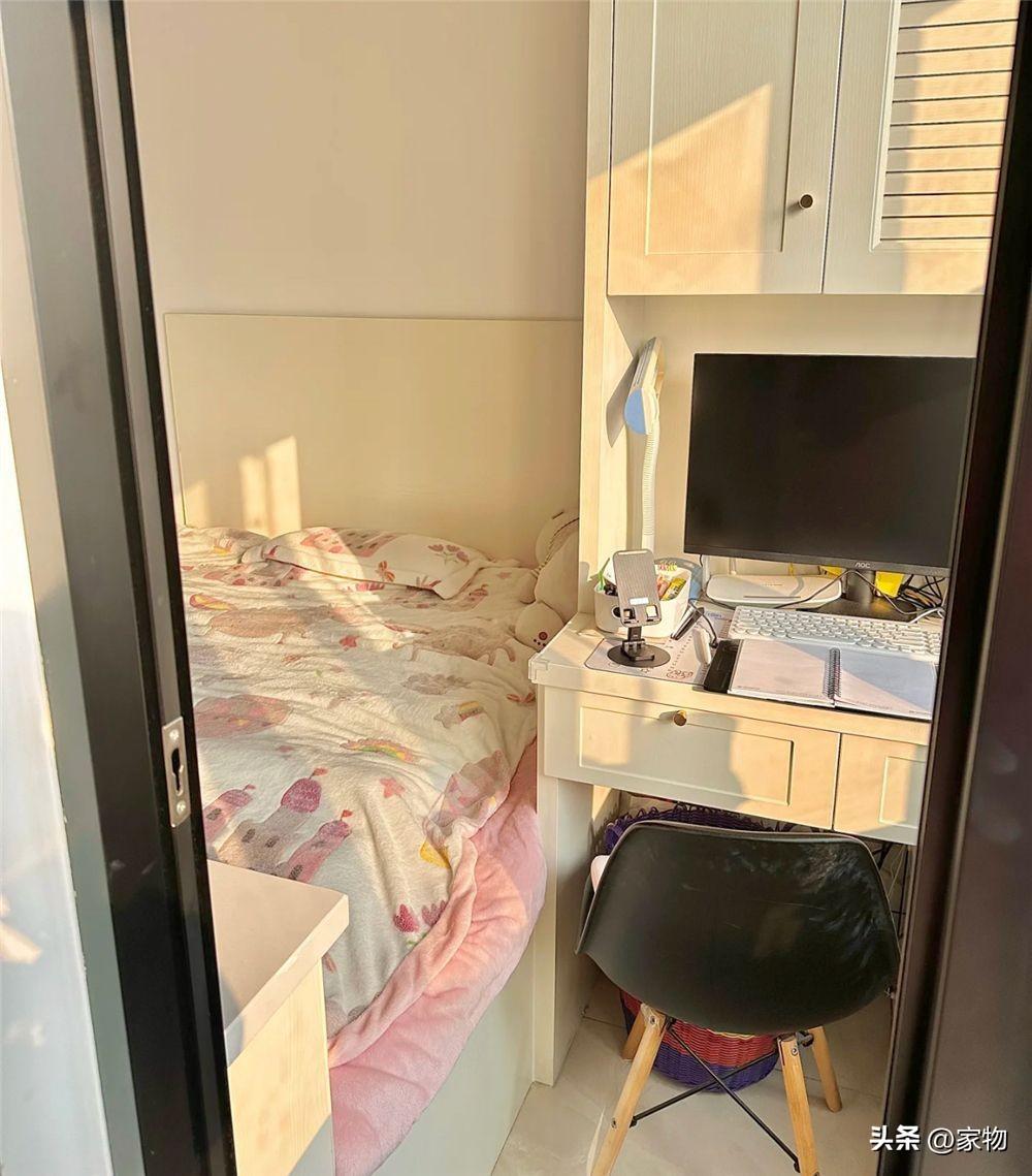 而牀邊的小小電腦桌靠窗擺放,將這最後一處角落空間儘可能充分地利用了起來,坐在這裏辦公、玩遊戲,都絲毫不會覺得憋屈。