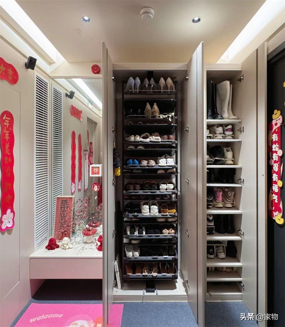 她將這電梯間裏有限的面積充分利用, 不僅做了定製鞋櫃,還把設備和消防井煥然一新,在不影響正常使用的前提下,儘可能裝飾得好看了一些。