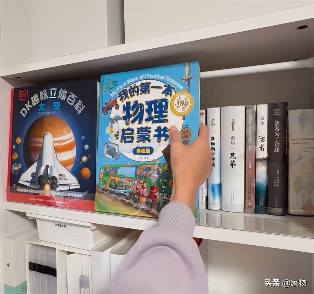 可以在層架下方貼上L形的邊擋,上面安裝支撐條,二者搭配之下,讓書架變成了一個小小的展示空間,孩子的繪本,大人看的雜誌小說,都可以放在這裏,兼顧展示和便於拿取性。