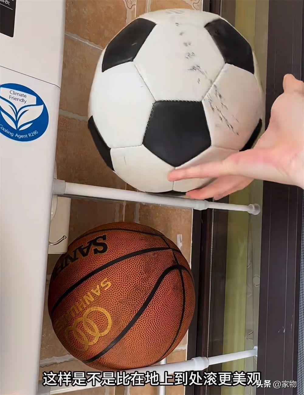 很多人都不知道,陽臺角落,或者是燃氣、空氣能熱水器安裝的旁邊,完全可以利用支撐杆,收納孩子的足球籃球等球類,直接把球放上去,比在地上碰到就到處滾有條理多了~也算是雞肋空間巧妙利用的典範了。