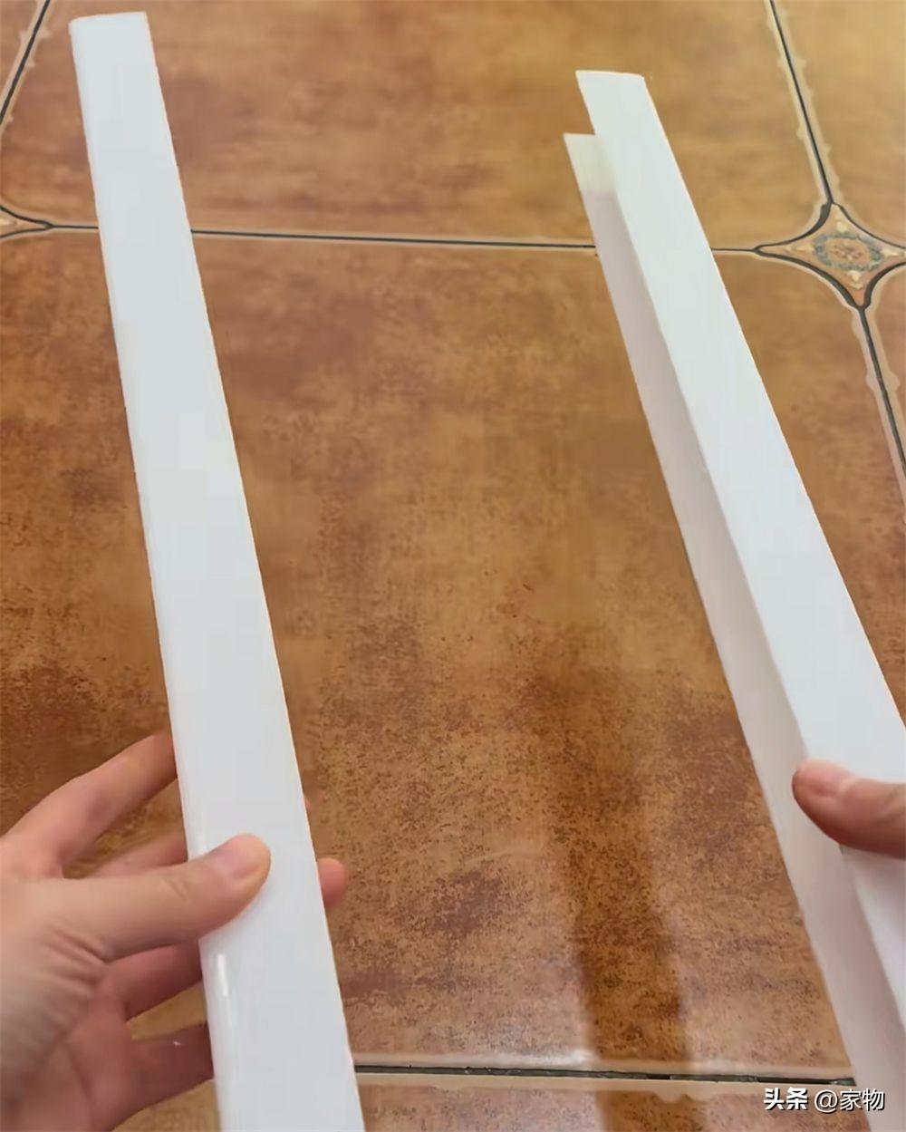 在網上就能買到這種塑料材質的U形槽,乍一看,真的不知道這東西有什麼用處,但兩個槽口相對組合,貼在櫥櫃門的後面,就變成了一個完美的紙巾收納架。