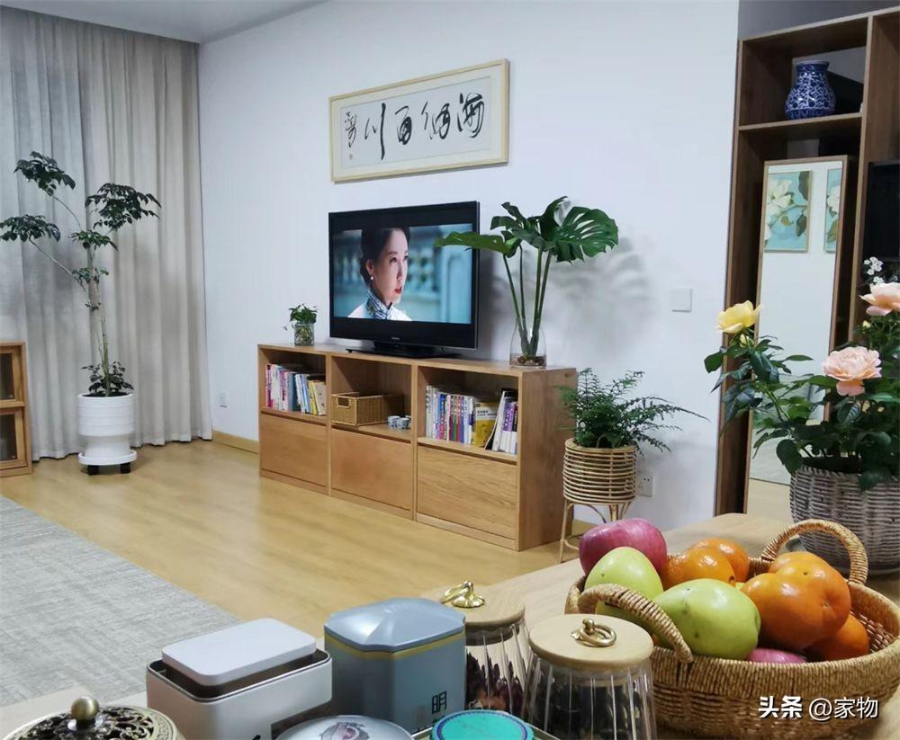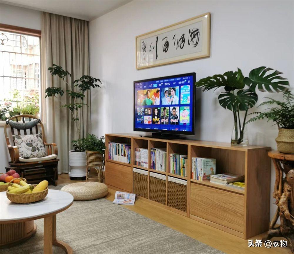 背景牆,一幅字畫掛在正中央,周圍都是白牆,在各種綠植的映襯下,顯得既簡單又生機勃勃,比起那些華麗的大理石、軟包電視牆,反而多了幾分素雅恬靜的感覺。
