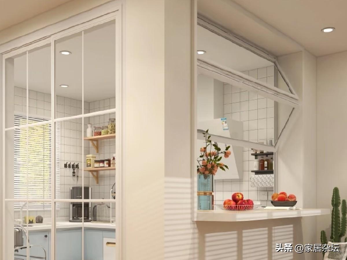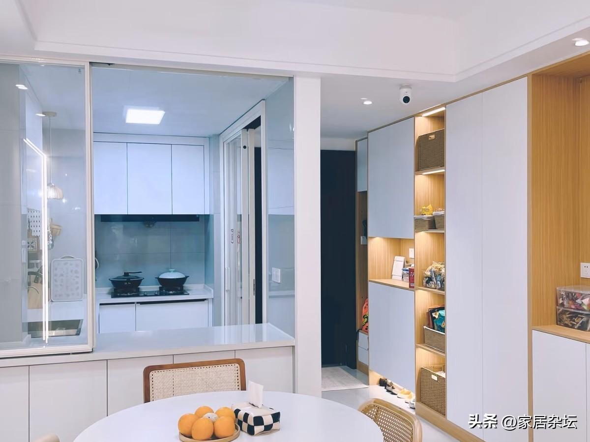 建議大家,不想總感覺一個人被困在廚房裏,試試這種半開放式廚房,會給你帶來不一樣的體驗。一道牆體的改變,門的變換,就可以改變這個困擾。