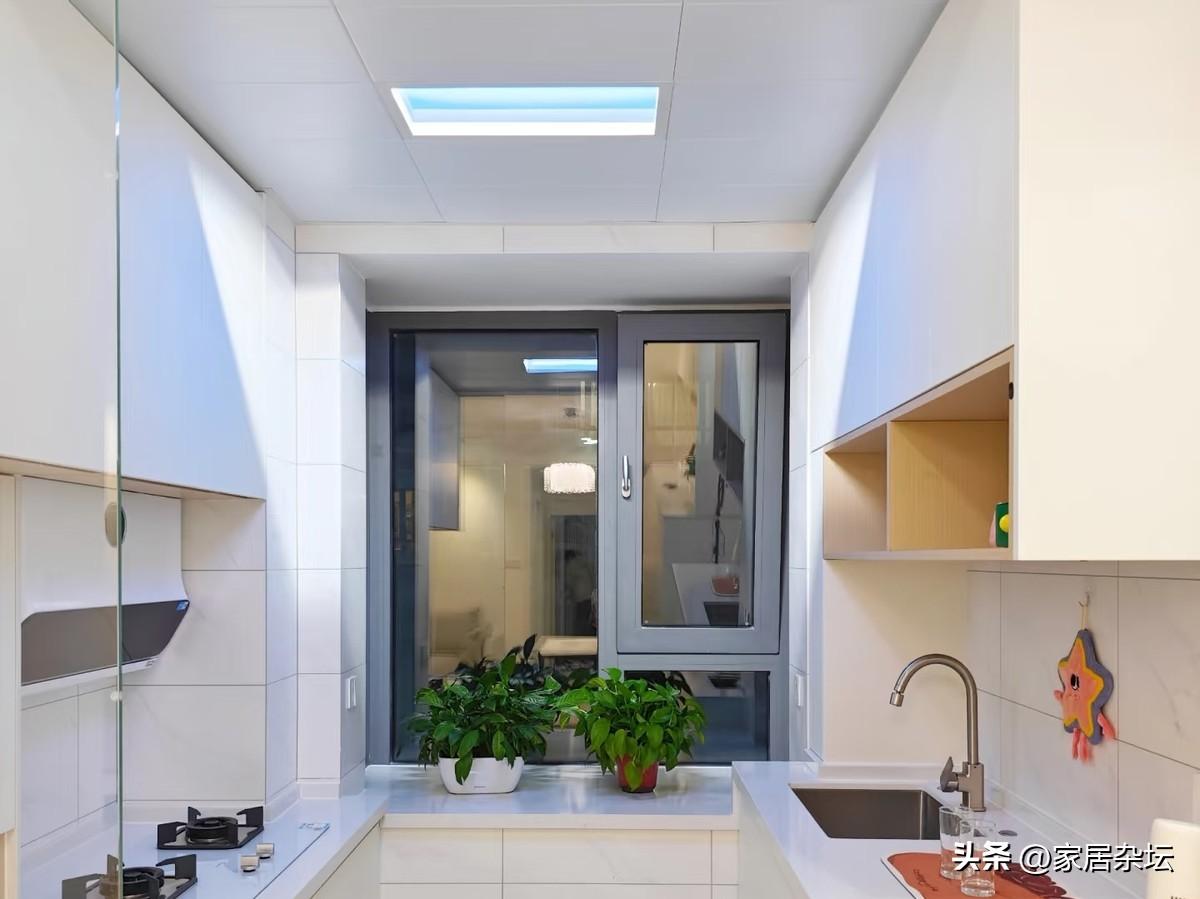 個人建議大家,廚房要採取主燈加輔燈。一個吸頂燈,然後櫃子上再安裝燈帶,解決光源不足的問題,會讓你越用越好用。