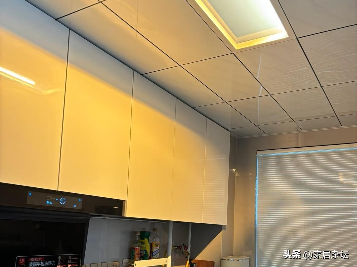 個人建議大家,廚房要採取主燈加輔燈。一個吸頂燈,然後櫃子上再安裝燈帶,解決光源不足的問題,會讓你越用越好用。