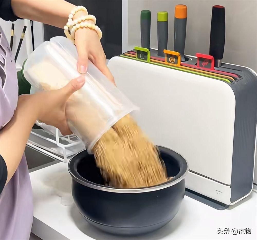 而且上面的蓋扣,也特別容易掉,本來收納的糧食就沉重,倒一邊的時候蓋子掉了,輕則來一頓“雜糧飯”,重則弄得廚房到處都是米粒豆子,收拾起來簡直是噩夢。