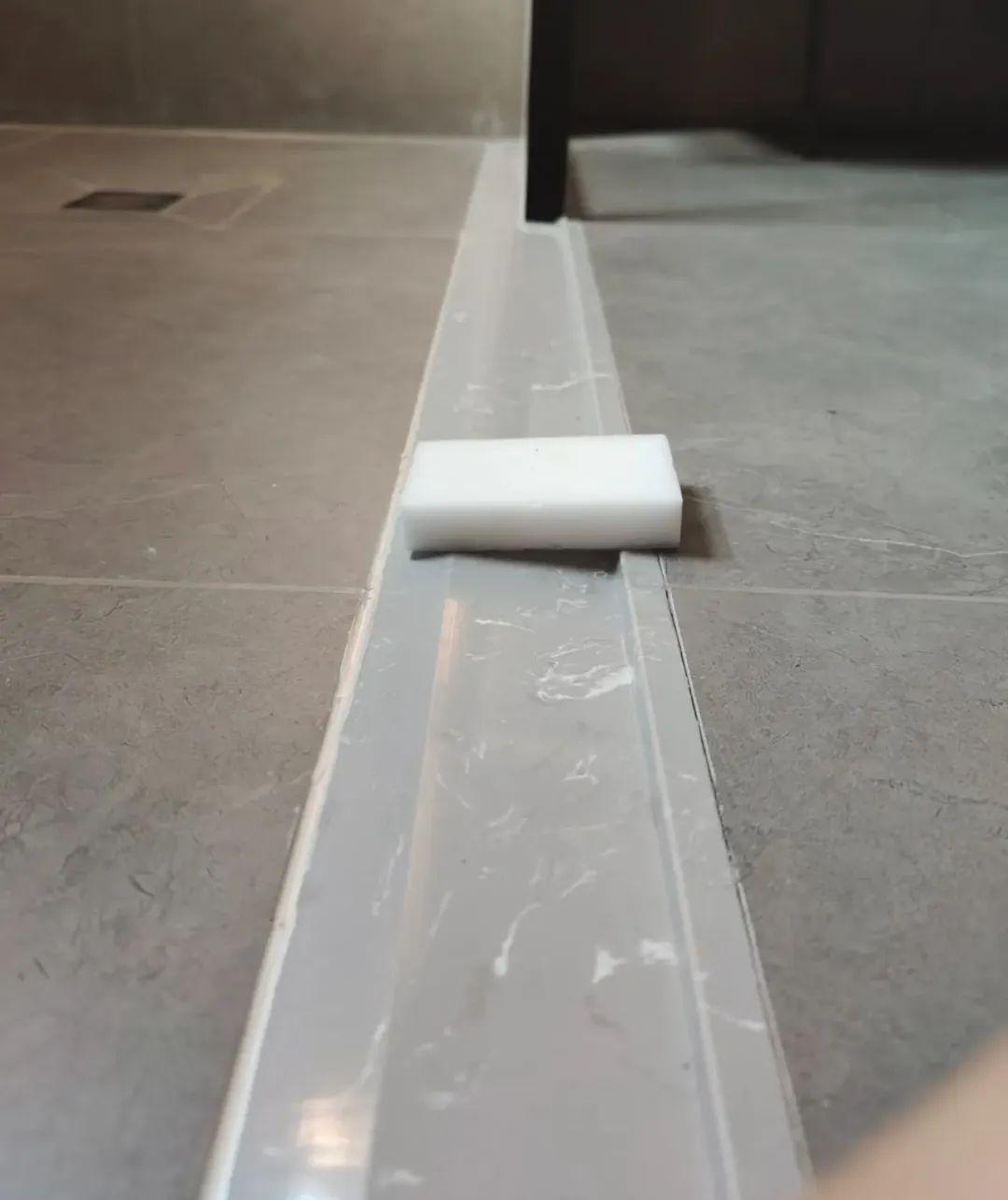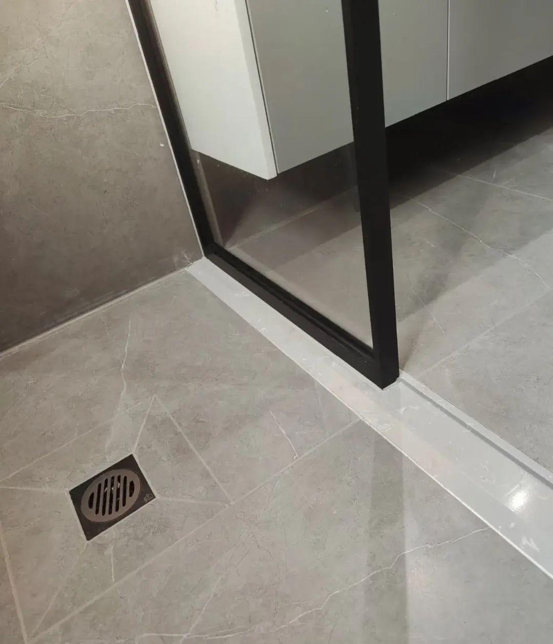 隔水玻璃門可以直接做在石基上,這樣噴頭的水會自動導流到溼區地漏處,這種做法整體性和美觀性更好,而且衛生無死角,打掃也方便。
