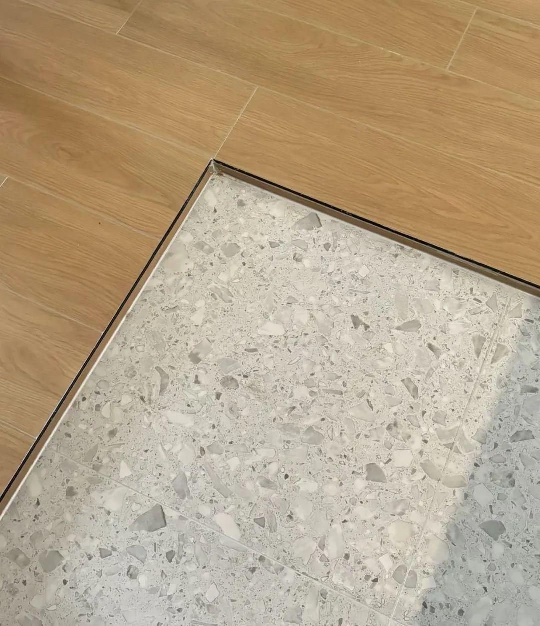 而做下沉式玄關,最需要注意的一點就是陽角處收邊,只用普通材料貼面,很容易後期脫落,建議搭配Y字型地臺陽角收邊條,加強固定。