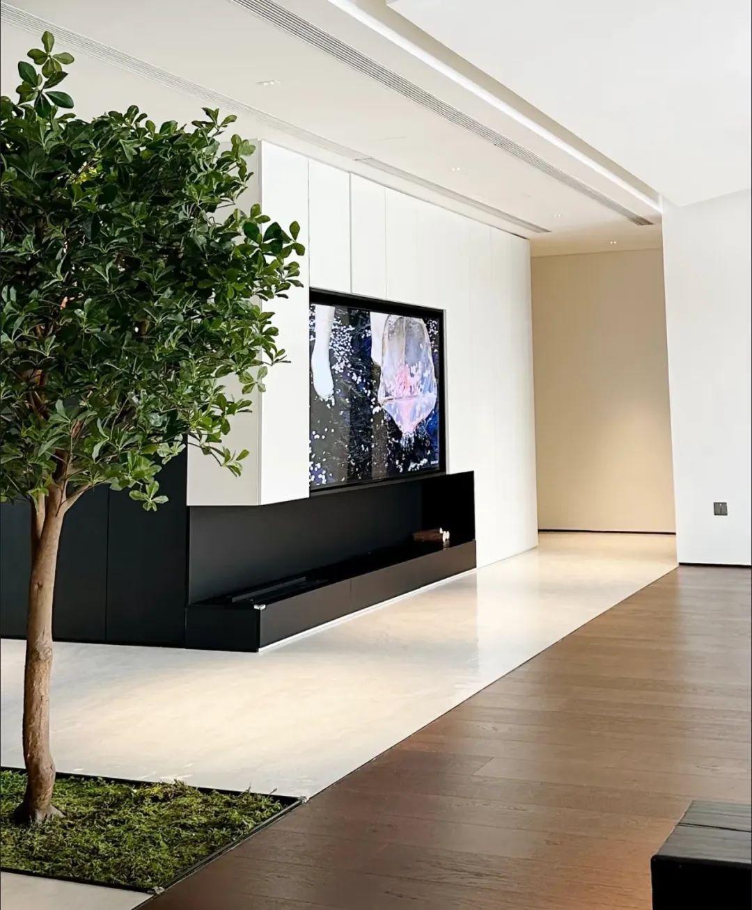 將綠植放在坑裏,上方再用沙土固定,在表面一層可以鋪上鵝軟石或者苔蘚裝飾,下沉式花壇就搞定啦~ 分享一個小tip: 客廳的綠植越大,視覺上顯得家越大。