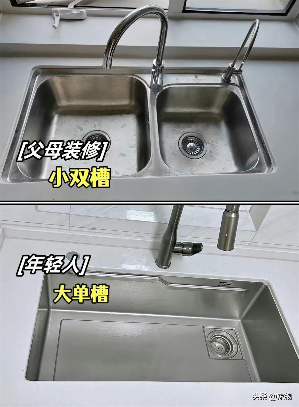 或許是看上了它分區多,覺得實用,老一輩在裝修的時候,很多都做了小雙槽水槽,但真的是生活中才知道它有多難用。