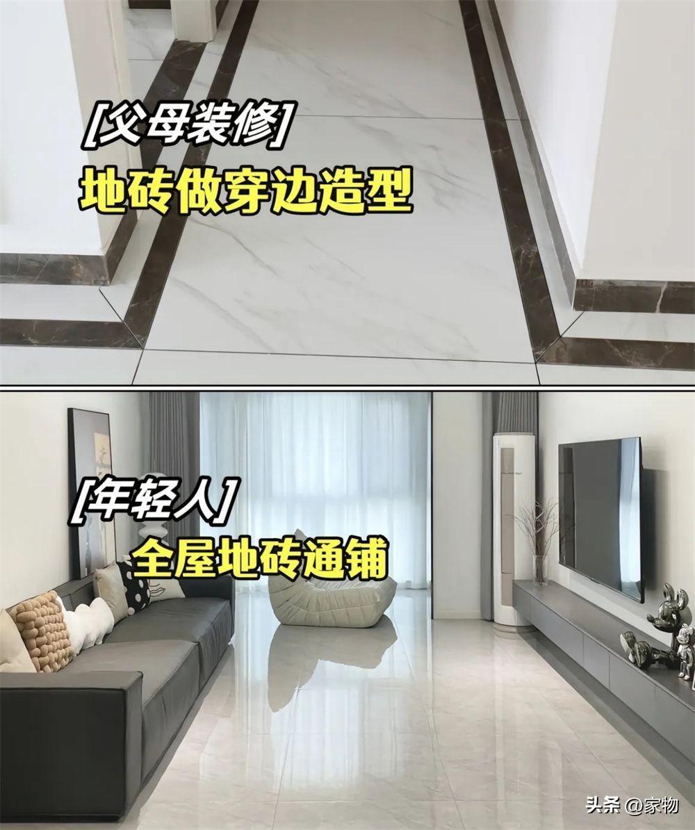 如今年輕人裝修,地磚大都會做成簡潔的通鋪樣式,顯得空間大還不凌亂,我個人也建議大家做這種通鋪式的地磚。