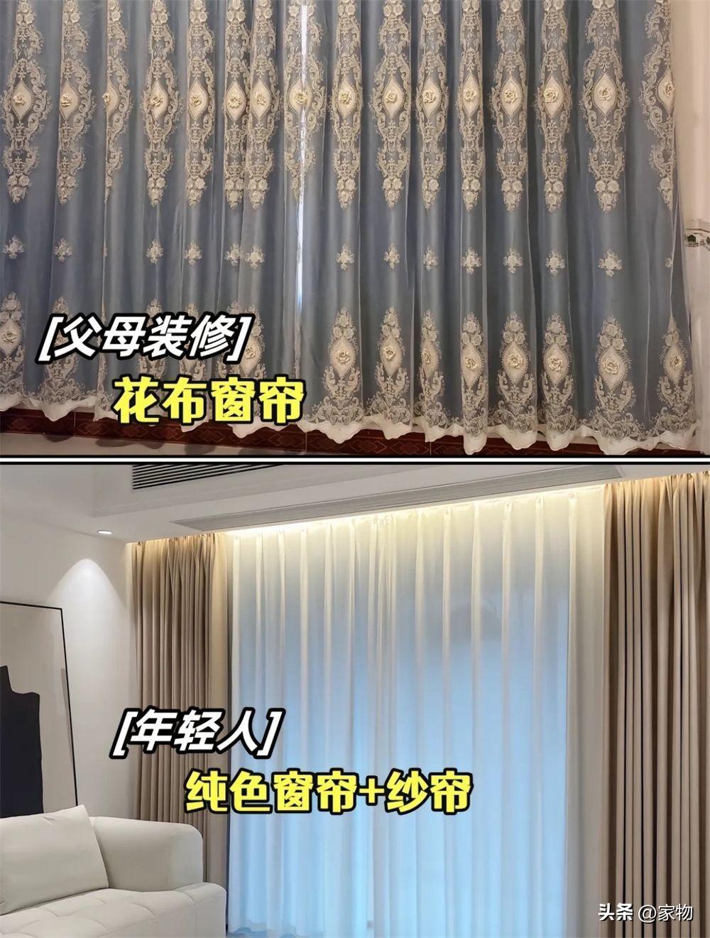 遠不如現在年輕人都會選擇的純色窗簾和紗簾組合,靈動的同時又百搭。