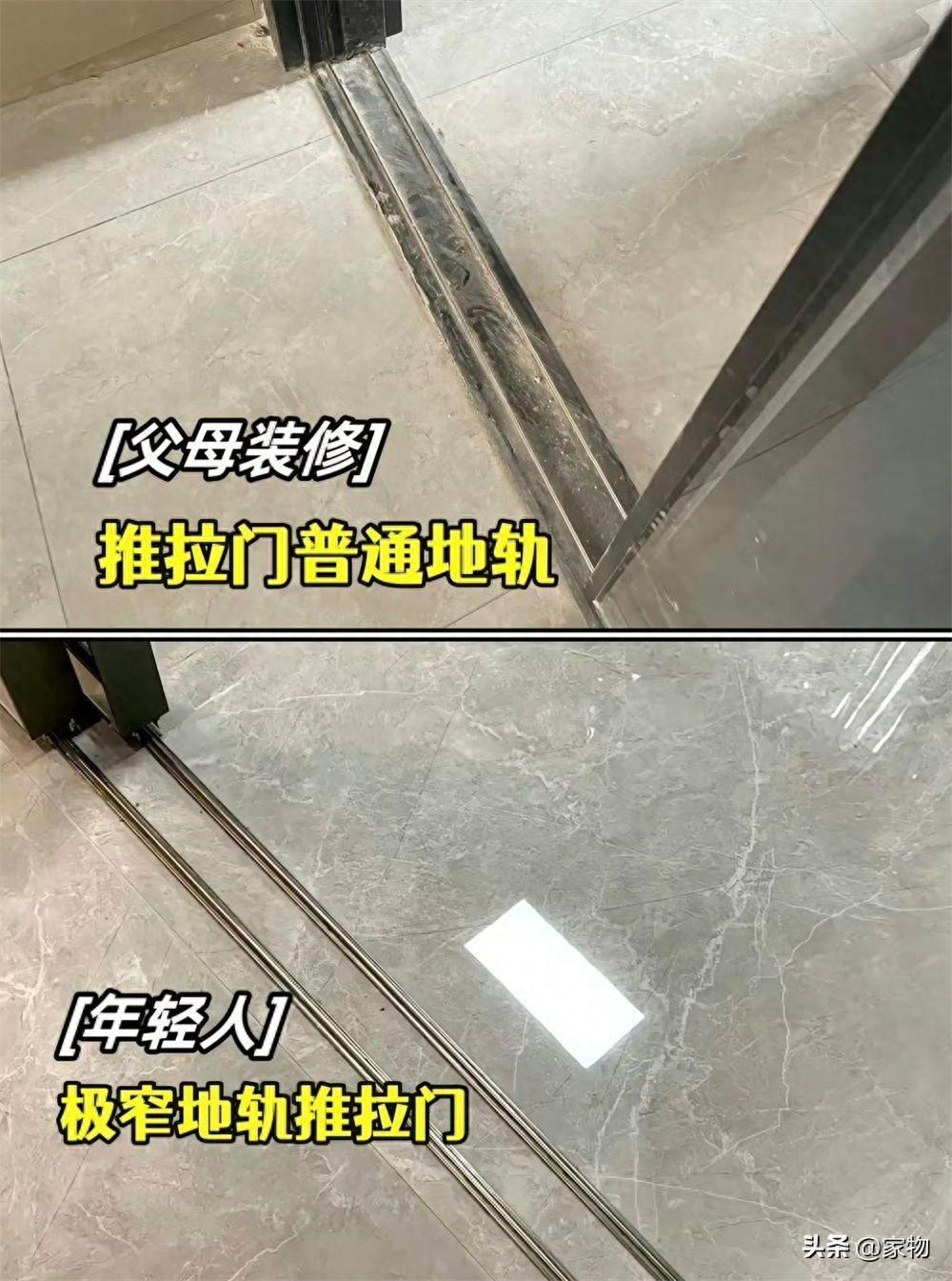 但現在來看,它藏污納垢,難以清潔,還容易磕絆到腳,真的缺點多多;反觀現在的外凸式極簡地軌推拉門,不僅看起來簡潔,又容易清潔,再加上比吊軌門穩當不少,何樂而不爲呢?