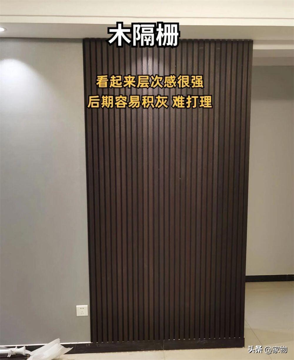最後,就是家裏的木格柵裝飾了,不少人會在客廳背景牆、電視背景牆、牀頭背景牆這些位置做木格柵,好看是好看了,但藏污納垢,打理起來要多費事兒有多費事兒,相比之下,乳膠漆就簡潔、省心多了。
