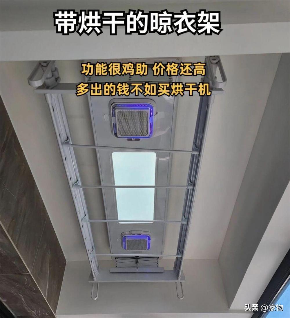 帶烘乾功能的晾衣架,功能看似豐富,實際上很是雞肋,烘乾、紫外線殺菌這些功能基本沒開過,如果真的剛需烘乾的人,也會買烘乾機而非這種衣架,老老實實買一個普通的電動晾衣架就行了。