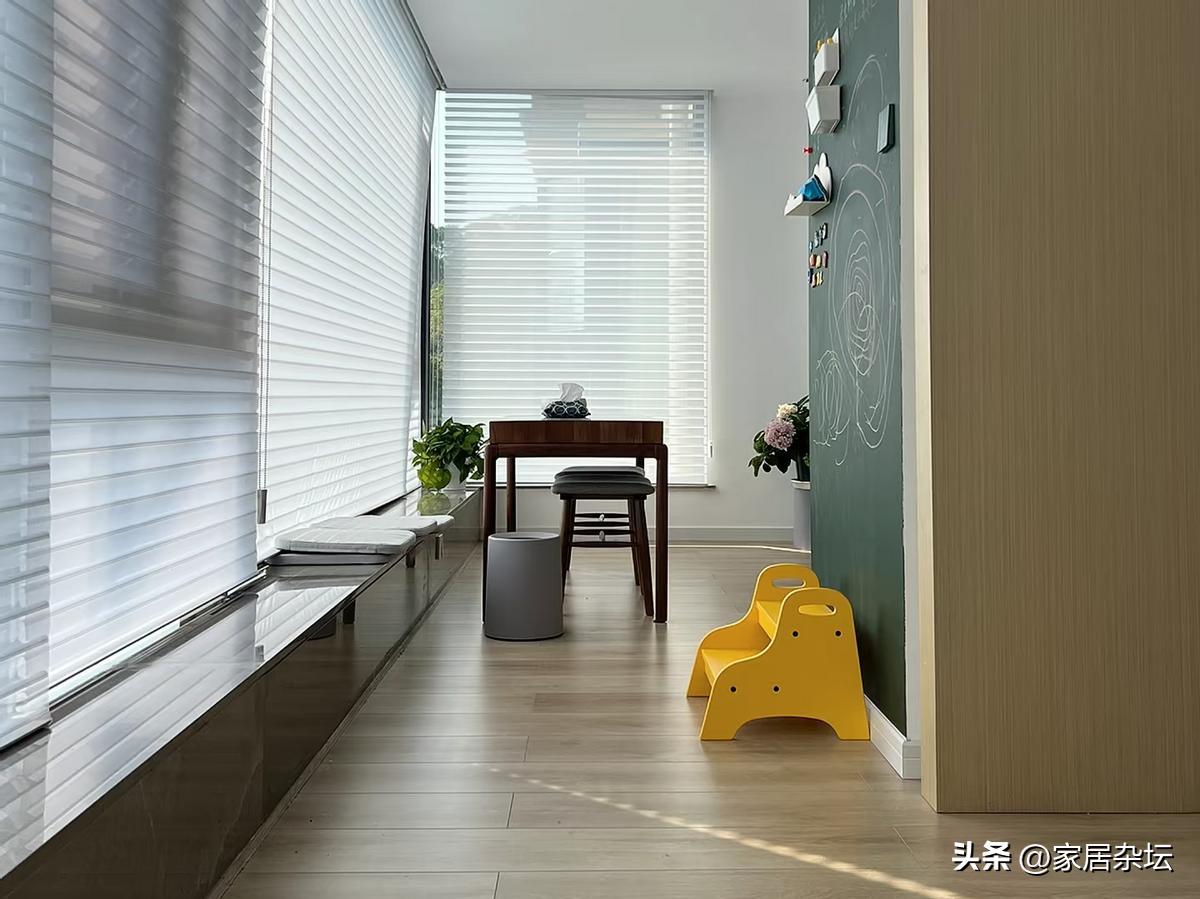 家裏有孩子的,可以實現孩子的活動區,鋪上爬行墊就可以了。如果想要書房,在這個地方,擺上書桌,也是個不錯的學習區。