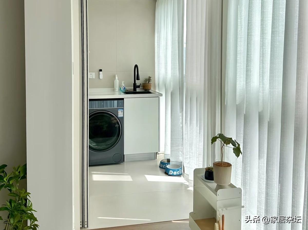 敞開區第一個功能,可以用來洗衣服。比如比較常見的就是設置洗衣機伴侶櫃,設置晾衣架。簡單的打造成一個洗衣機房。