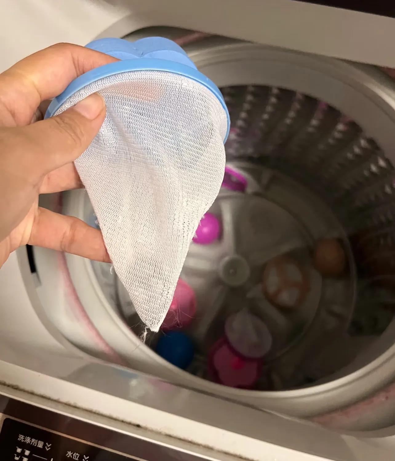 形狀挺怪、還能過濾洗衣機裏面的毛髮、毛絮,起到保護洗衣機的作用。