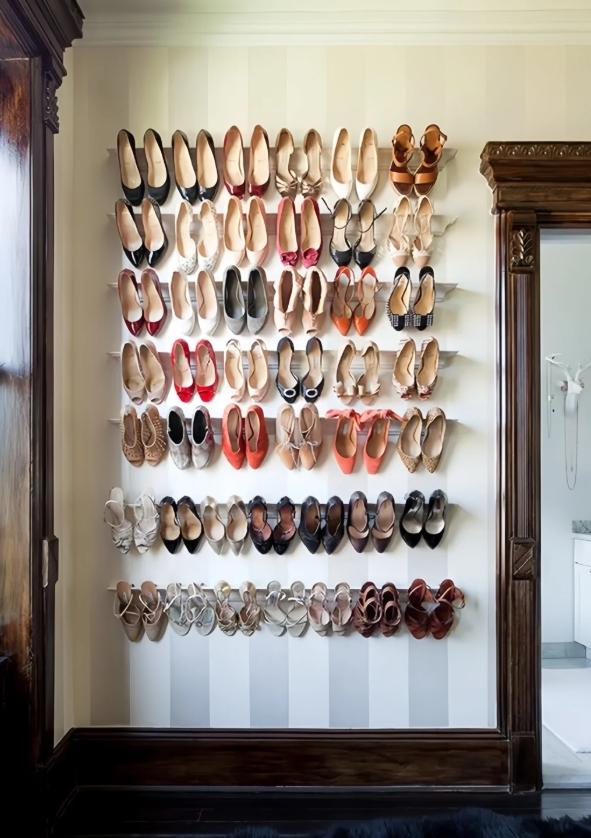 在牆面上釘上一些鋼板,然後讓鞋子直接“上牆”,這種思路也可以借鑑起來。
