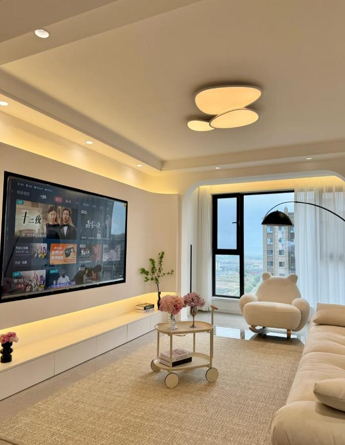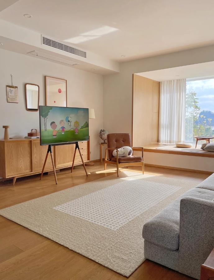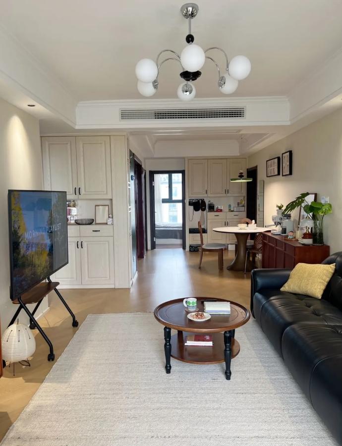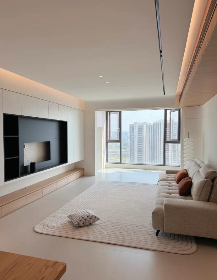 最直觀的感受就是,客廳“空無一物”的視覺體驗,簡直太寬敞了。即便是七八十平方米的小家,客廳也顯得很大!