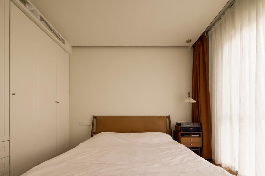 臥室空間簡單的木質與皮革的結合。保留着天然材料的細膩質感。臥室保留了天然材料的細膩質感,精心地加入了皮革與木質元素,打造出一個舒適自然的空間。時光在這個空間中緩慢流淌,看得見、摸得到的器物記錄下歲月的痕跡,讓你在這裏創造美好的記憶。
