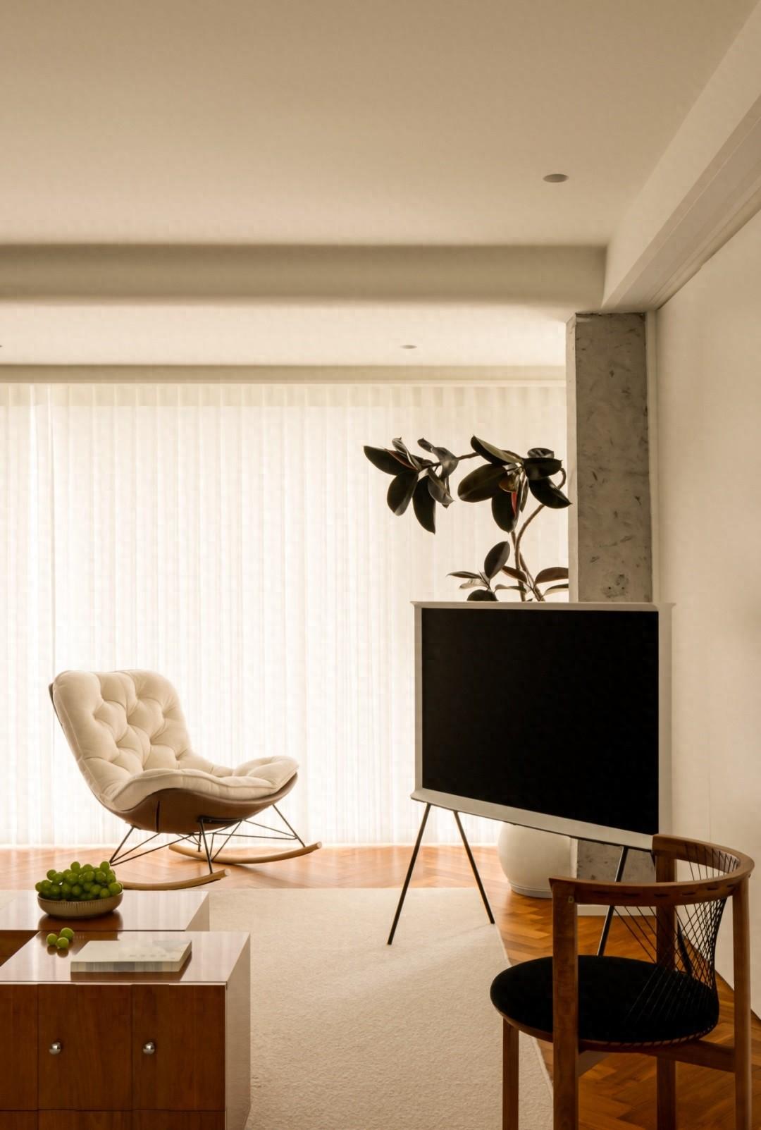 捨去傳統的電視背景牆,植入不同元素,營造自由的居家氛圍。
