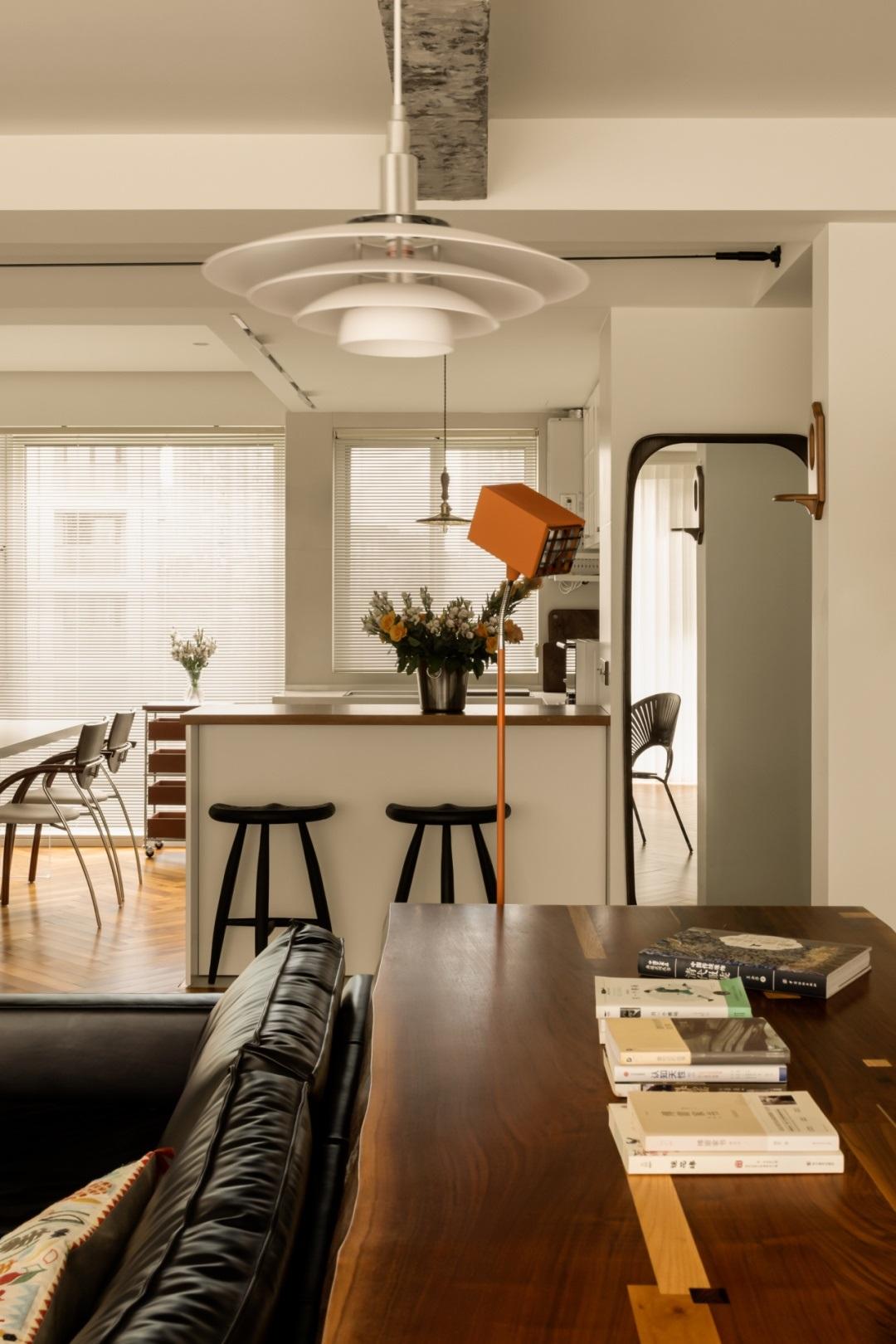 戶型中裸露的原始肌理與精緻考究的燈具相得益彰,展現出別具一格的自然美感。這種巧妙的融合,既保留了自然的樸素之美,也展示出設計的精湛之處。新與舊的元素在這裏並置共生,形成了獨特而鮮明的藝術風格。