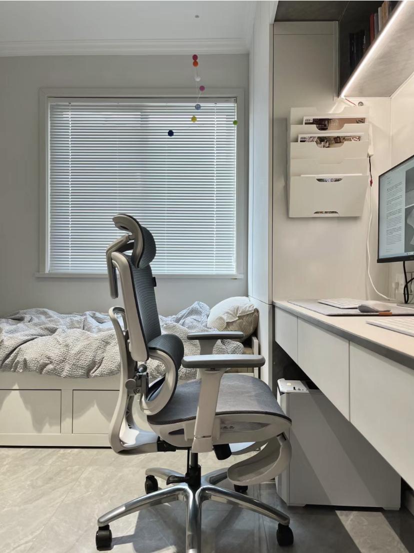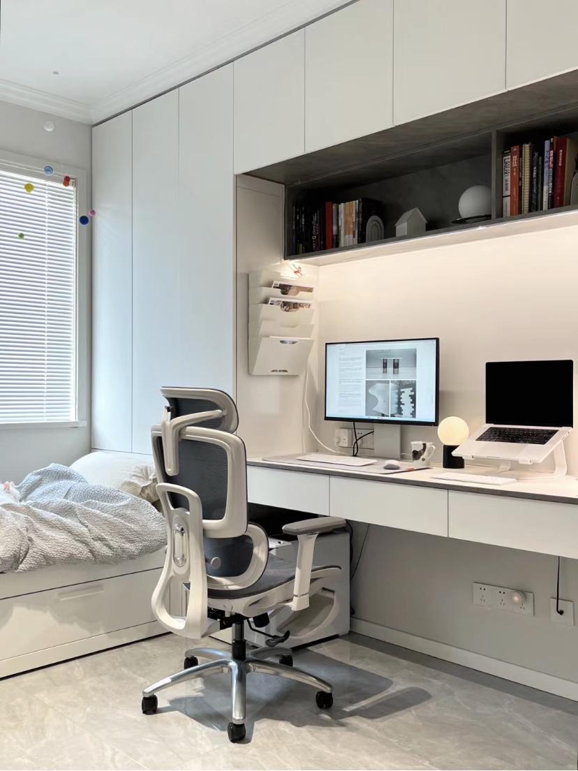榻榻米和書桌、衣櫃一體式的設計,讓小面積的空間也能功能滿滿,大大的書桌,可以同時容納兩個人一起學習和辦公,以後再也不用搶書房了。