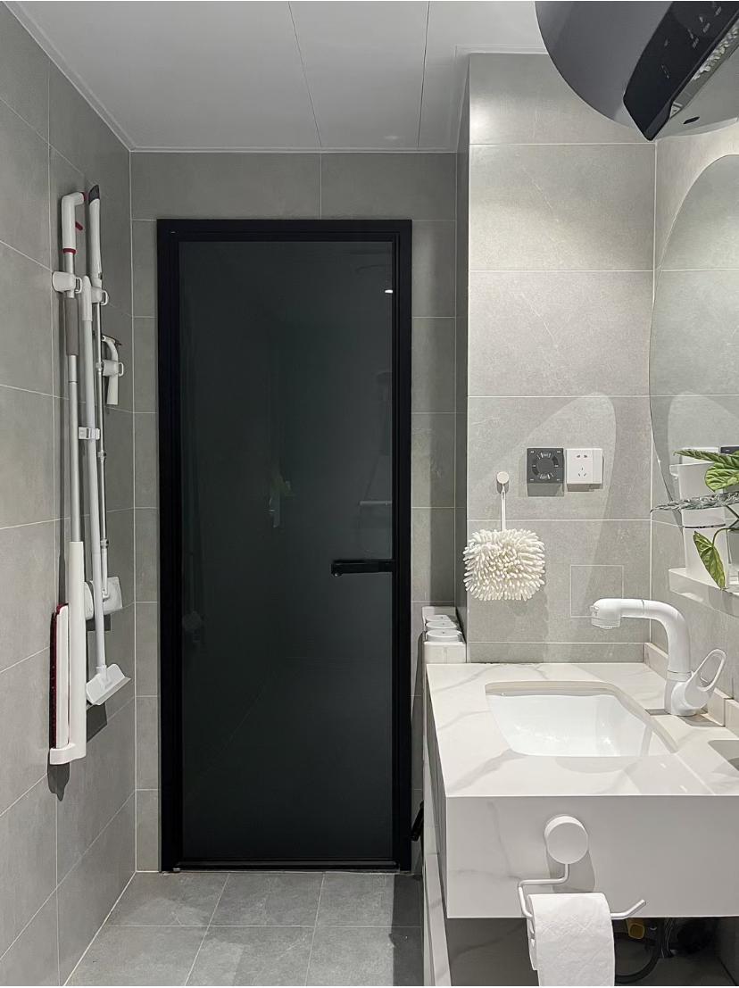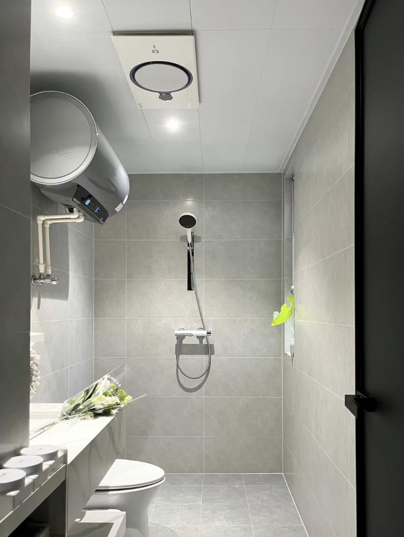 灰色系的衛生間,既能滿足整體黑白灰的色調搭配,又能讓衛生間更耐髒一些,而且五金潔具也可以隨意的往裏搭,真的是非常實用了,地面和牆面統一一個顏色,視覺感受也大氣。