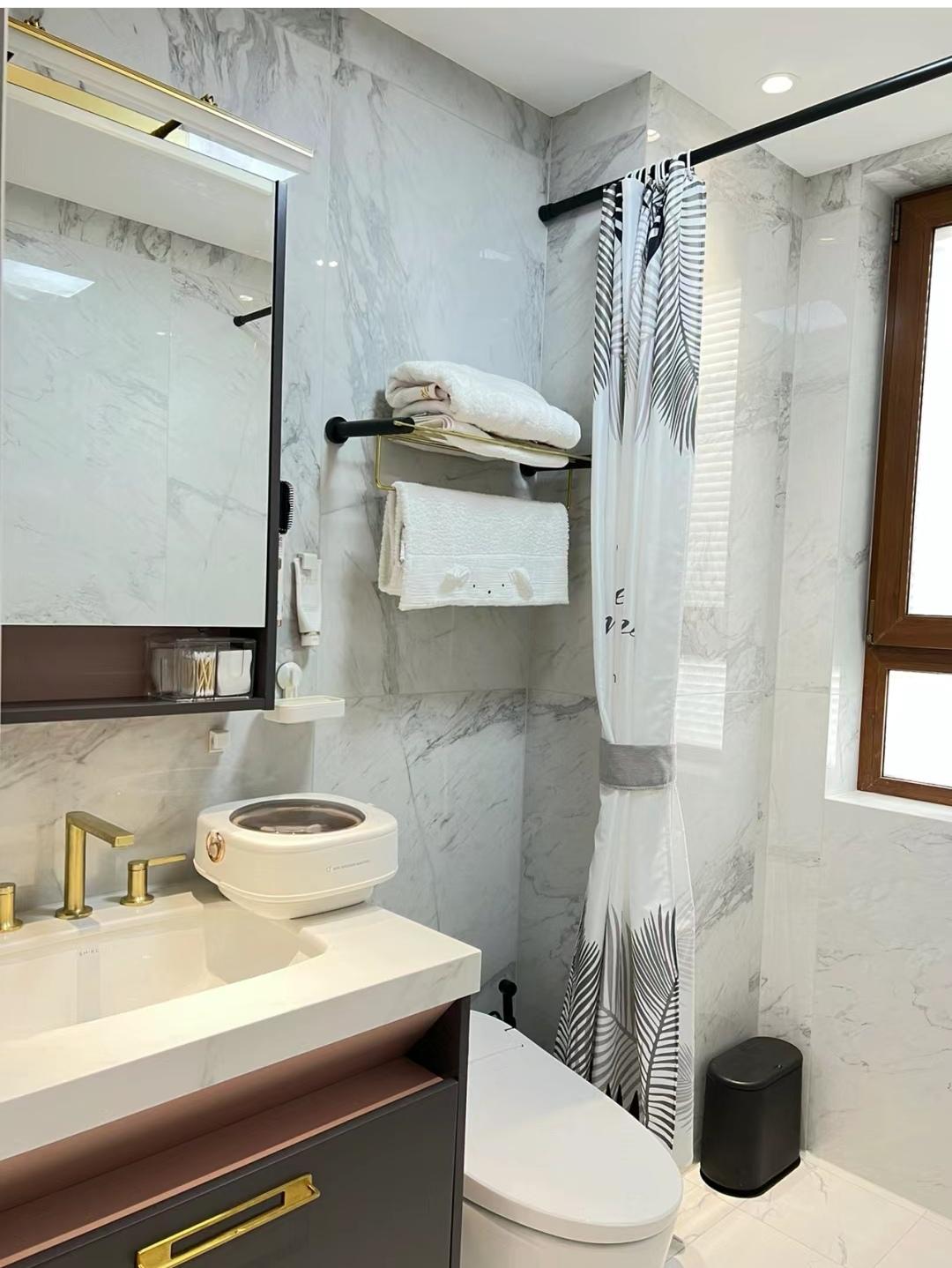衛生間小就不能用深色系了,所以牆磚地磚都選擇了白色,牆磚是1200mm✖️600mm大磚,地面是400mm*400mm的小磚。