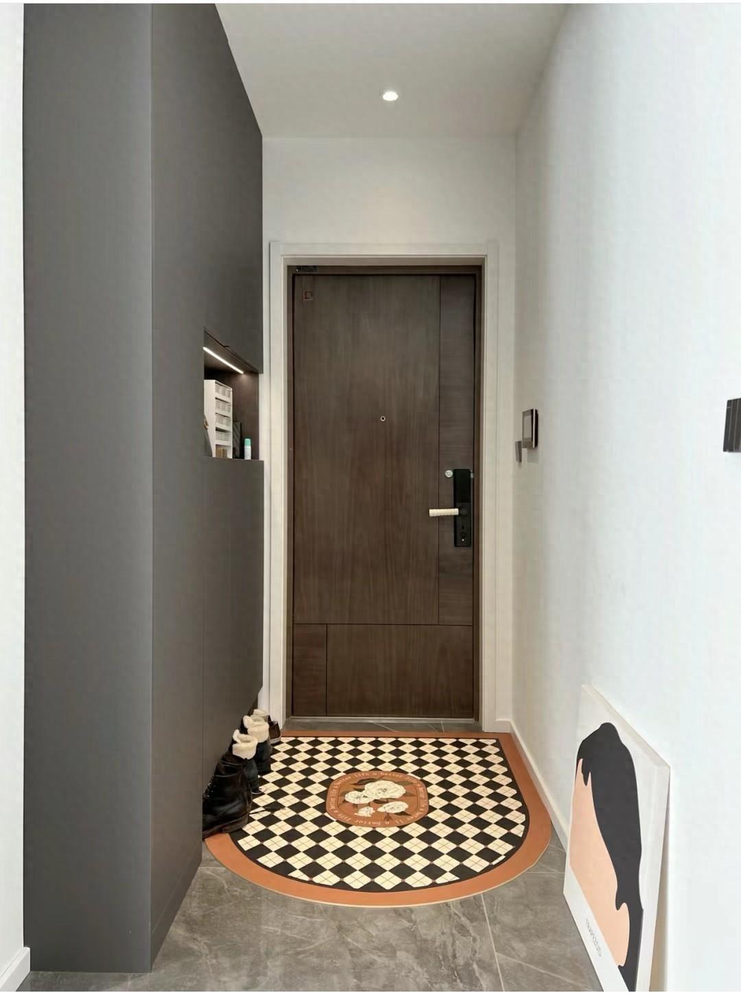 交房時進戶鞋櫃那裏比較窄,所以拆了重砌只砌了一層單磚,然後加深了鞋櫃的厚度,這樣就可以放進去正常的鞋盒了。改之前櫃深只能做到30cm,改後是35cm,弱電箱沒有動,還是回放到原來位置