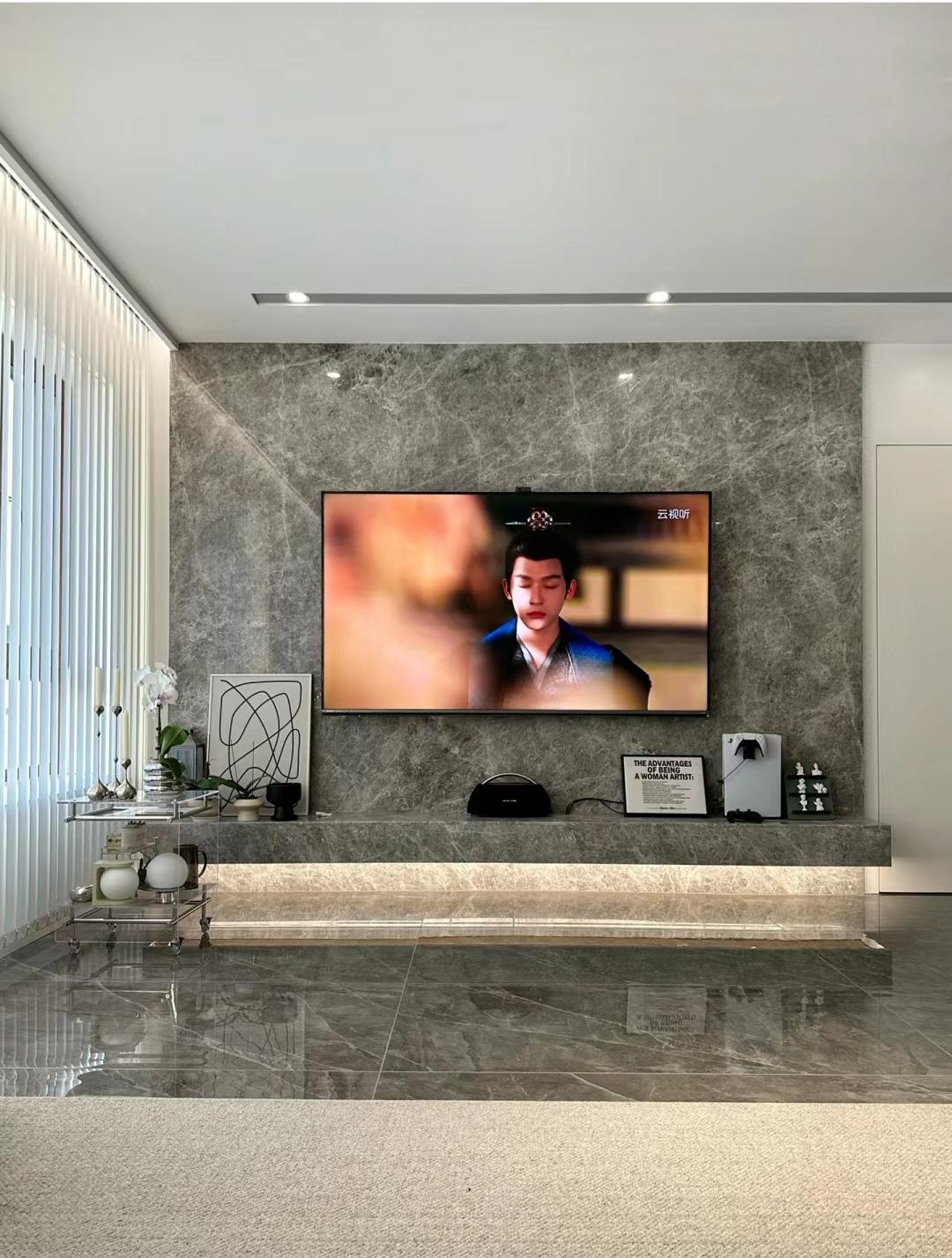 電視背景牆花了六千多塊做了整面大理石,很後悔,又貴又容易過時,不如直接用乳膠漆,更適合極簡風。