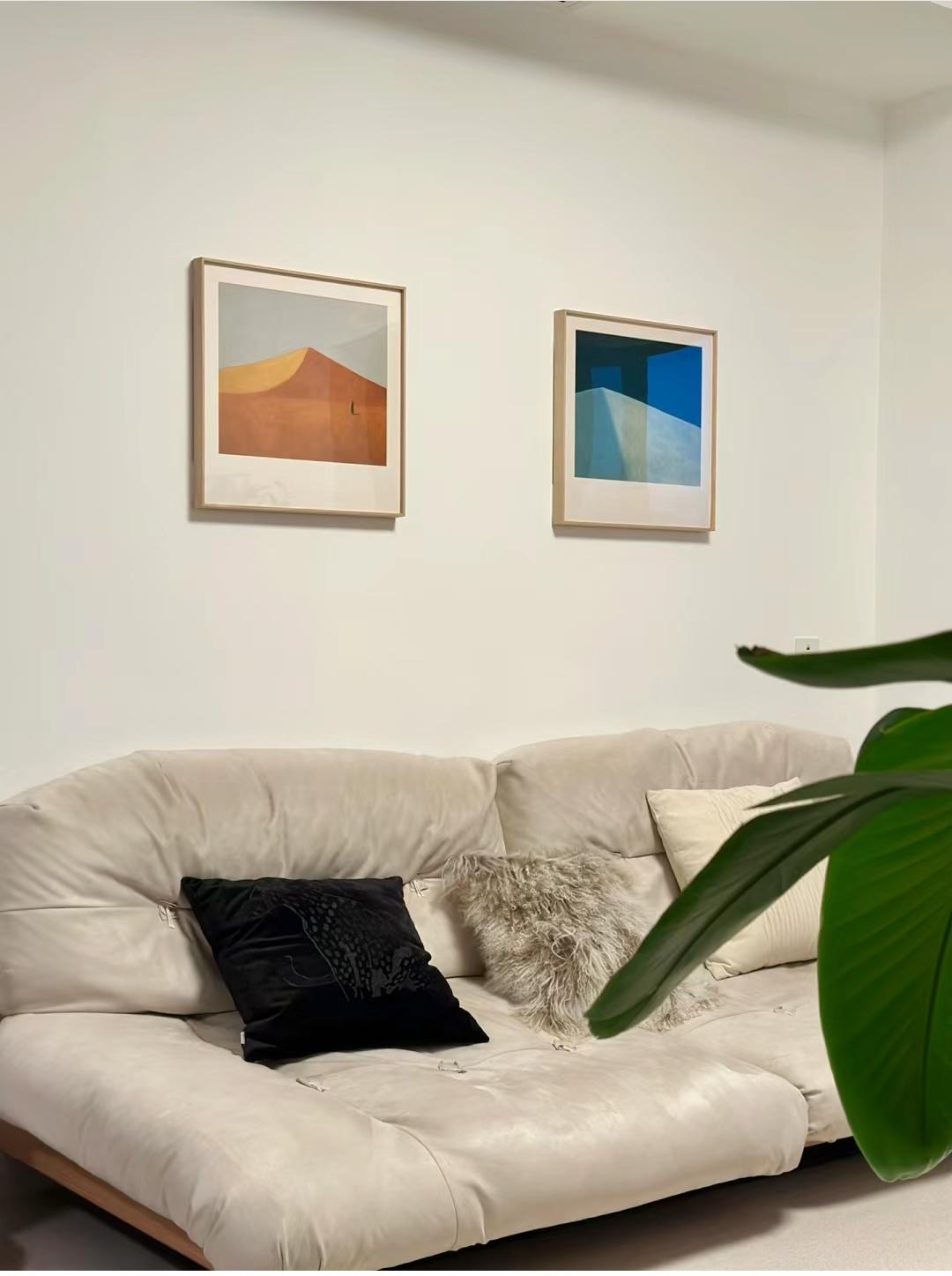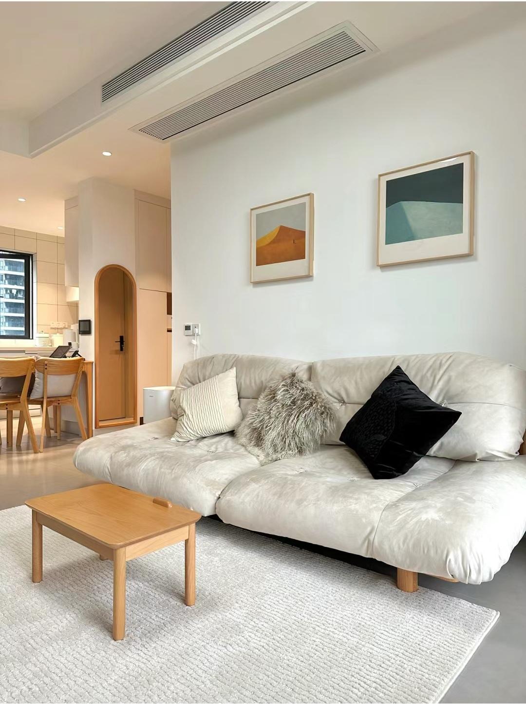 鬆鬆軟軟的沙發,只佈置了一個兩人位的主沙發,對於小客廳來說,尺寸是剛剛好的。其他的椅子或者是單人沙發都不要,小兩口使用,空間也是足夠的。