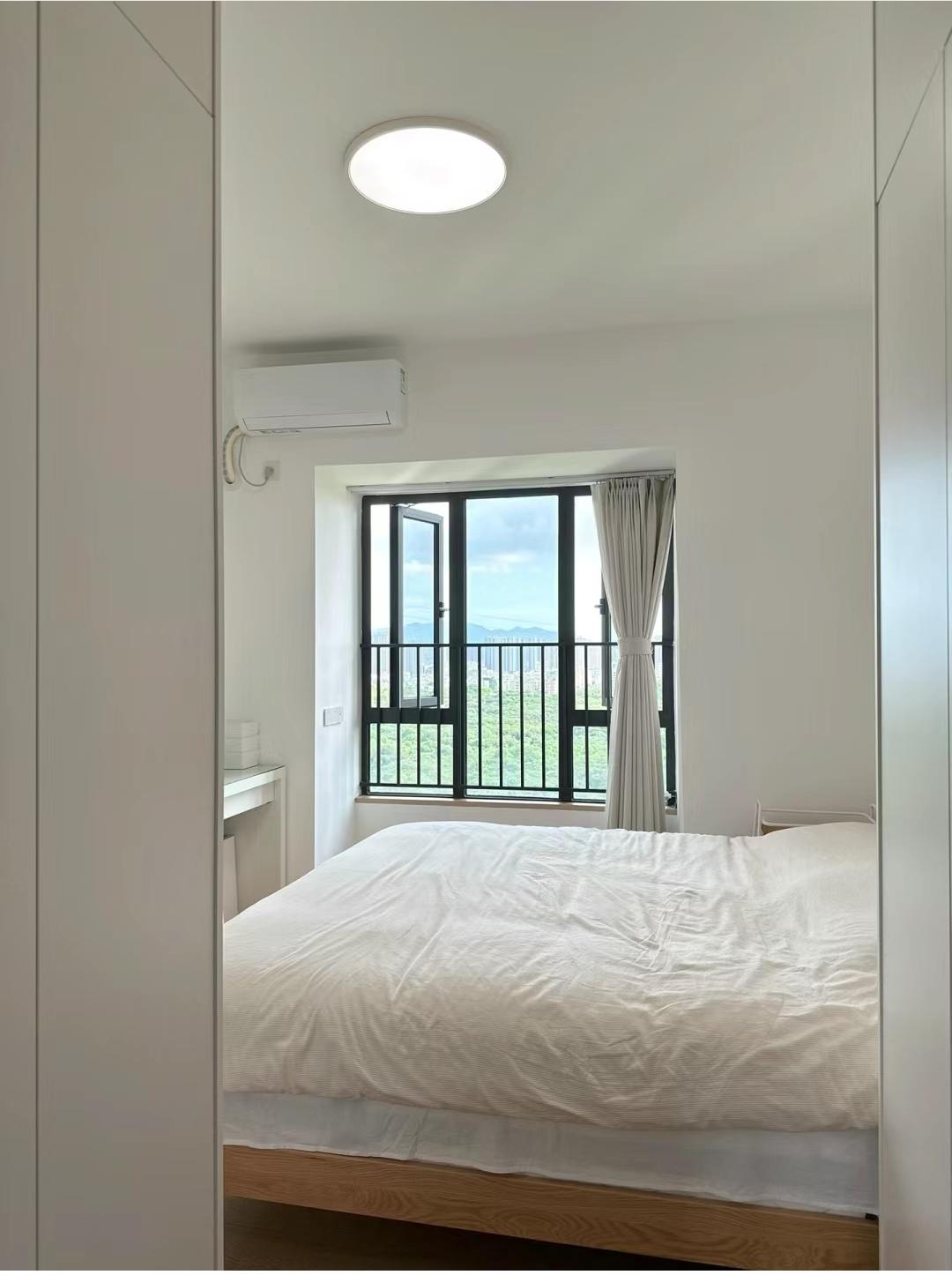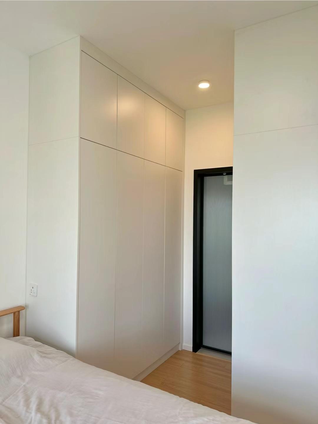 臥室極簡設計是屋主非常喜歡的,舒適而簡潔的空間讓人心情愉悅,原木色的雙人牀往臥室裏一放,還能增加自然感。