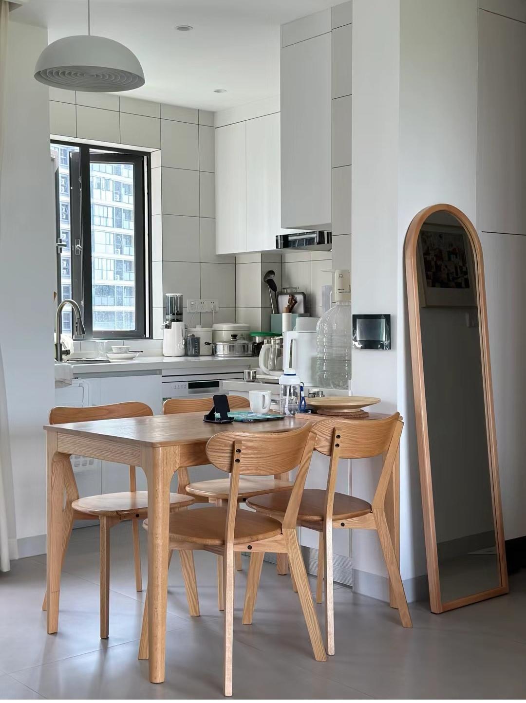 家裏的傢俱在挑選的時候,差不多都是選的同一系列的,餐桌和餐椅跟着客廳的茶几和電視櫃走,搬回家隨意搭配,肯定不出錯。
