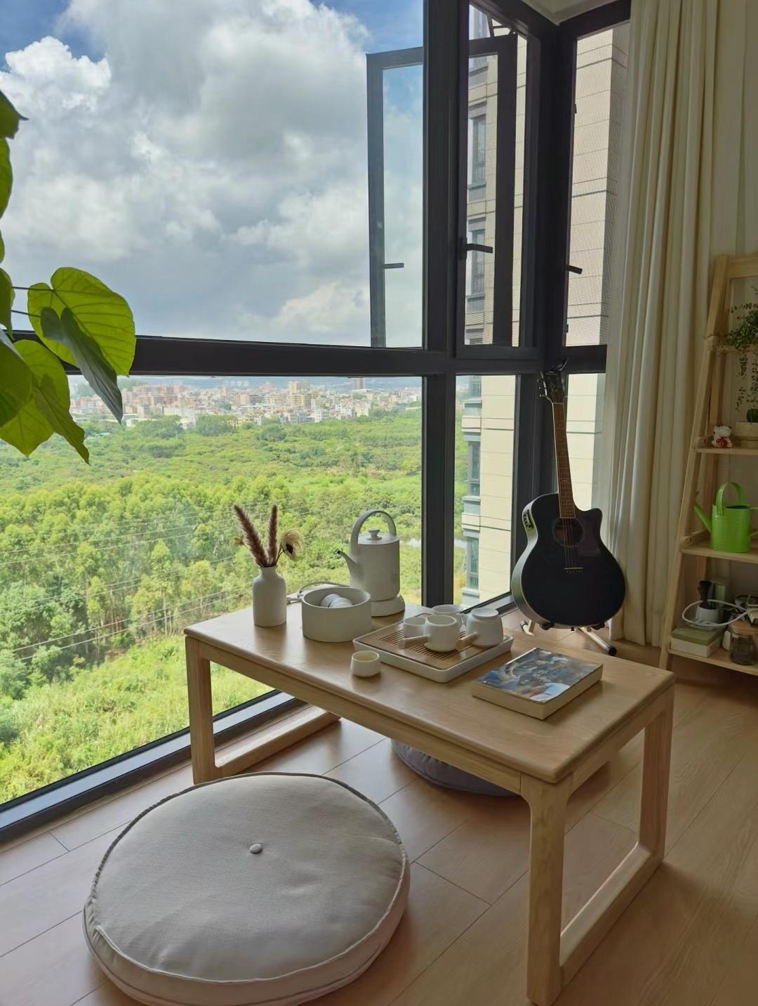 地臺上做各種的佈置,眼尖的朋友能看出,這個小茶几是客廳的那個。還真是,從客廳的地毯上搬到地臺上,就可以在地臺上喝茶聊天了。對於小戶型的房子來說,能將一個傢俱多次使用, 是空間不易雜亂的祕訣之一。