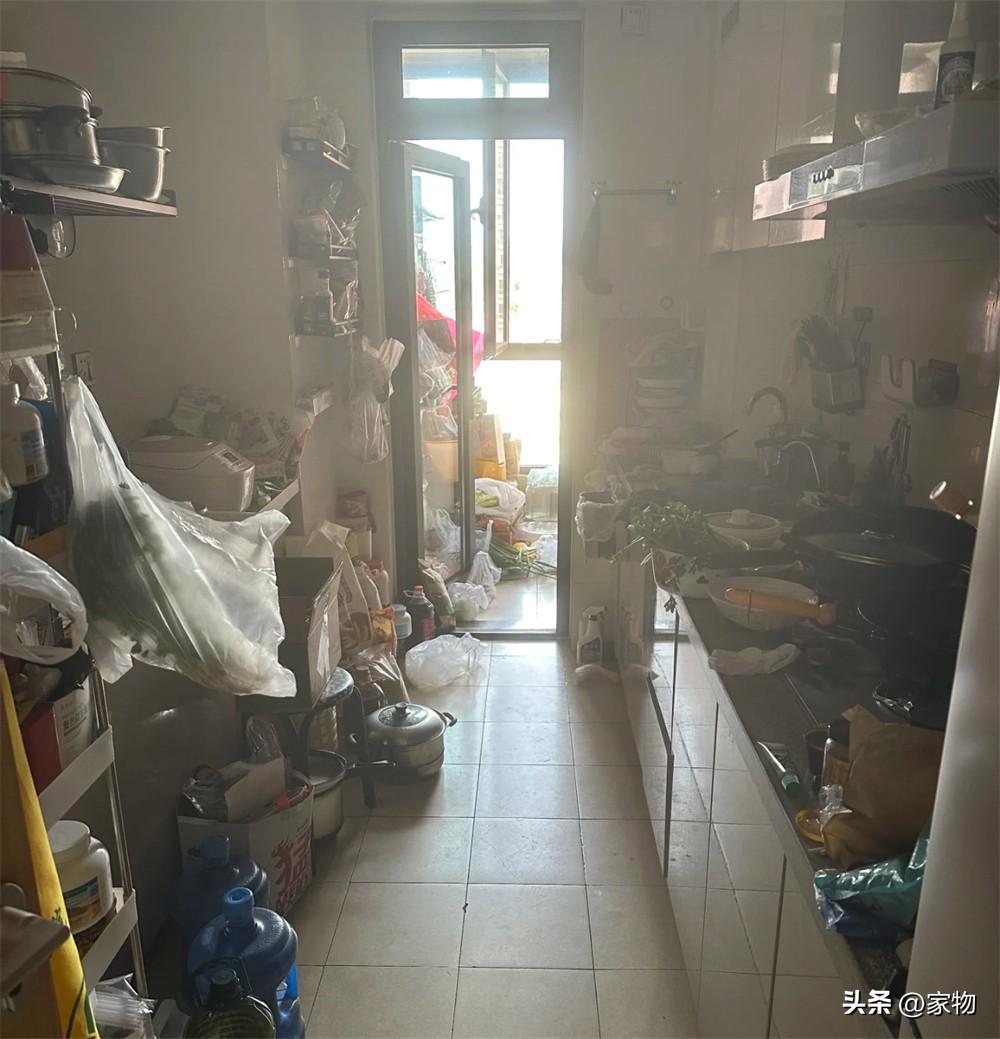 再說廚房,那可更是離譜,很難想象這間廚房居然還能正常做飯烹飪。