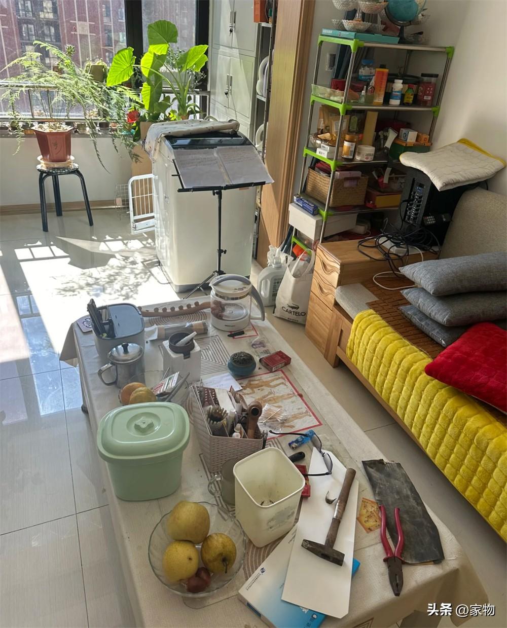 哦對了,還有家裏的餐桌,更是隻能擠出一個邊角空間,讓兩人平時簡單喫飯,剩下桌面上能放東西的地方早已堆滿了各式各樣亂七八糟的東西,一看就是平時隨手亂放的問題很嚴重。