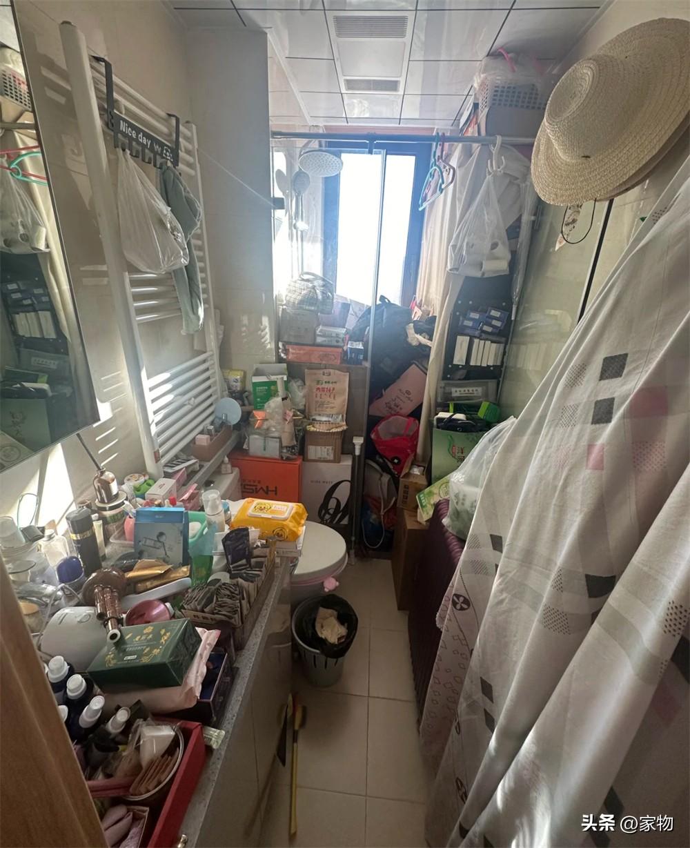 本來就窄的衛生間,如今更是隻留出了一個可以如廁的馬桶空間,周圍堆滿了各種各樣的雜物,甚至要去到馬桶所在的位置,都要側身經過纔行。